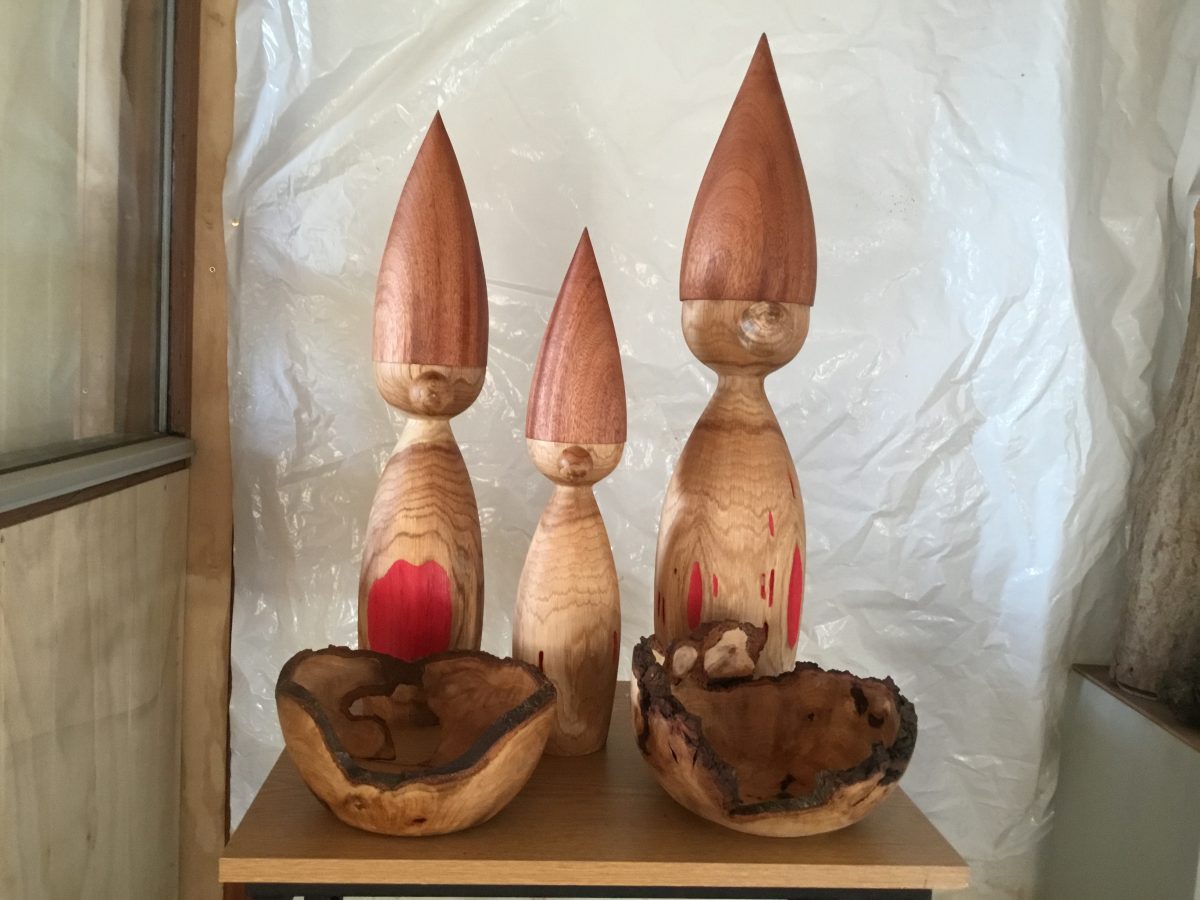 I mit værksted drejer jeg blandt andet cowboyhatte, skåle i forskellige str. vaser, smykker øreringe…